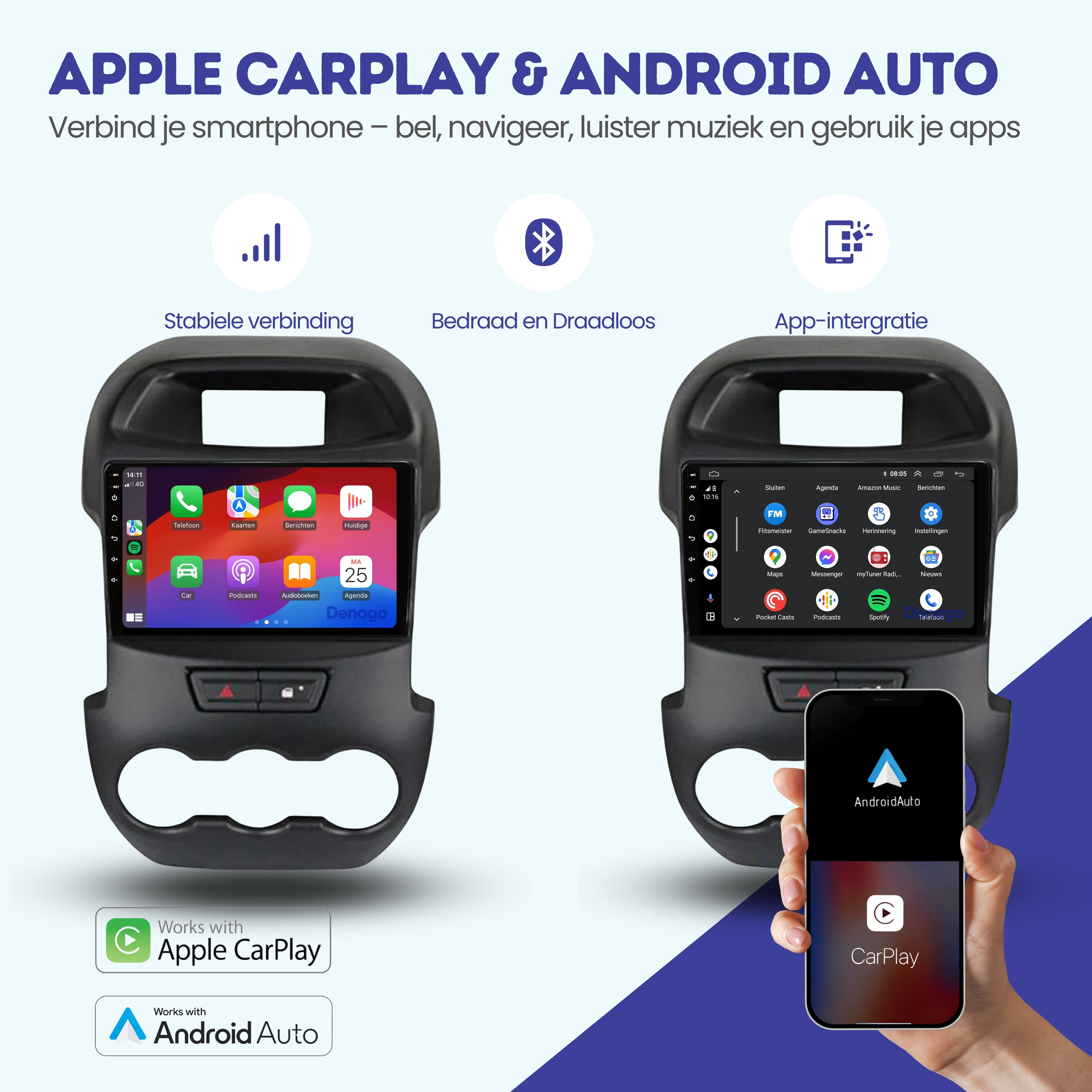 📱 CarPlay & Android Auto – draadloos gemak