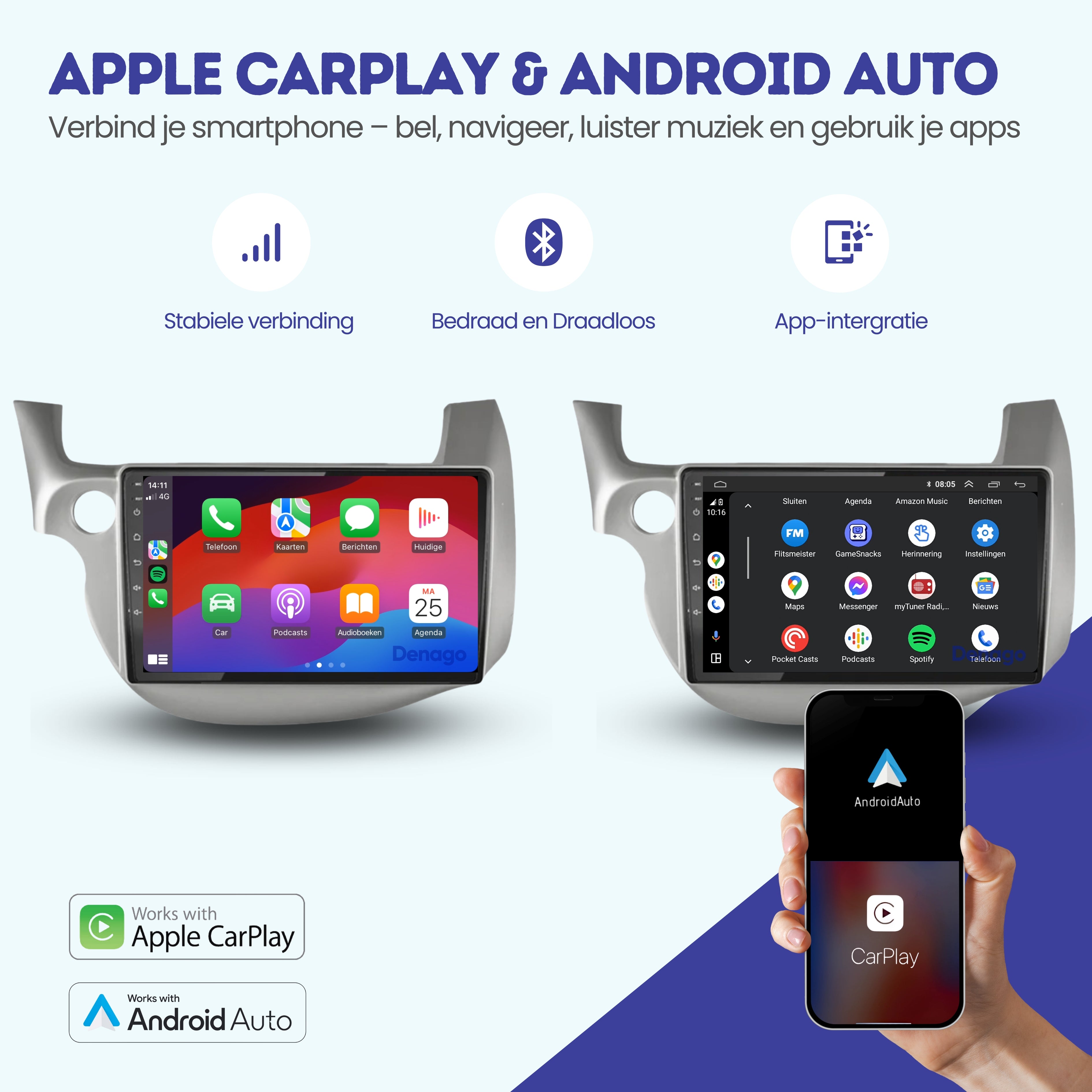 📱 CarPlay & Android Auto – draadloos gemak