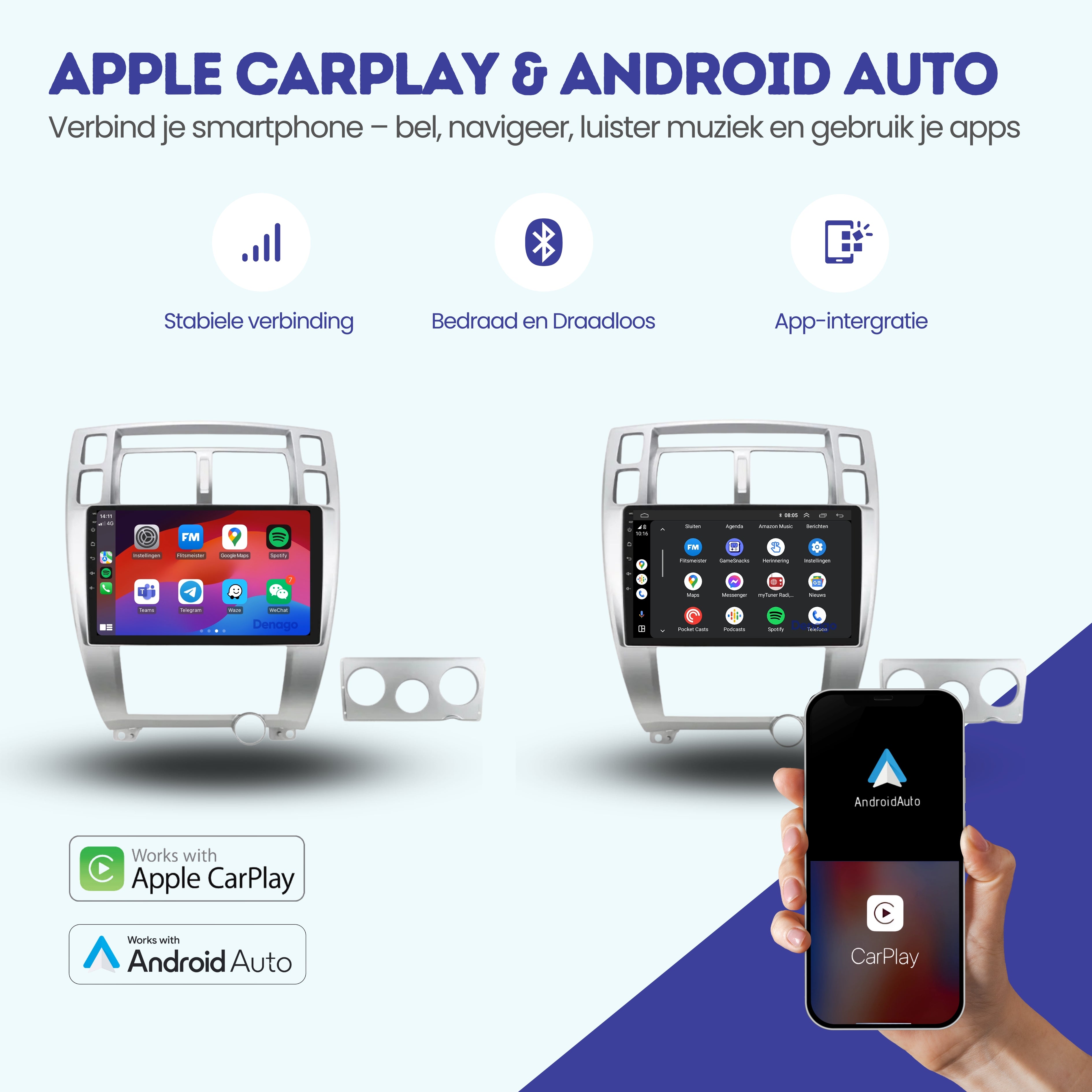 📱 CarPlay & Android Auto – draadloos gemak
