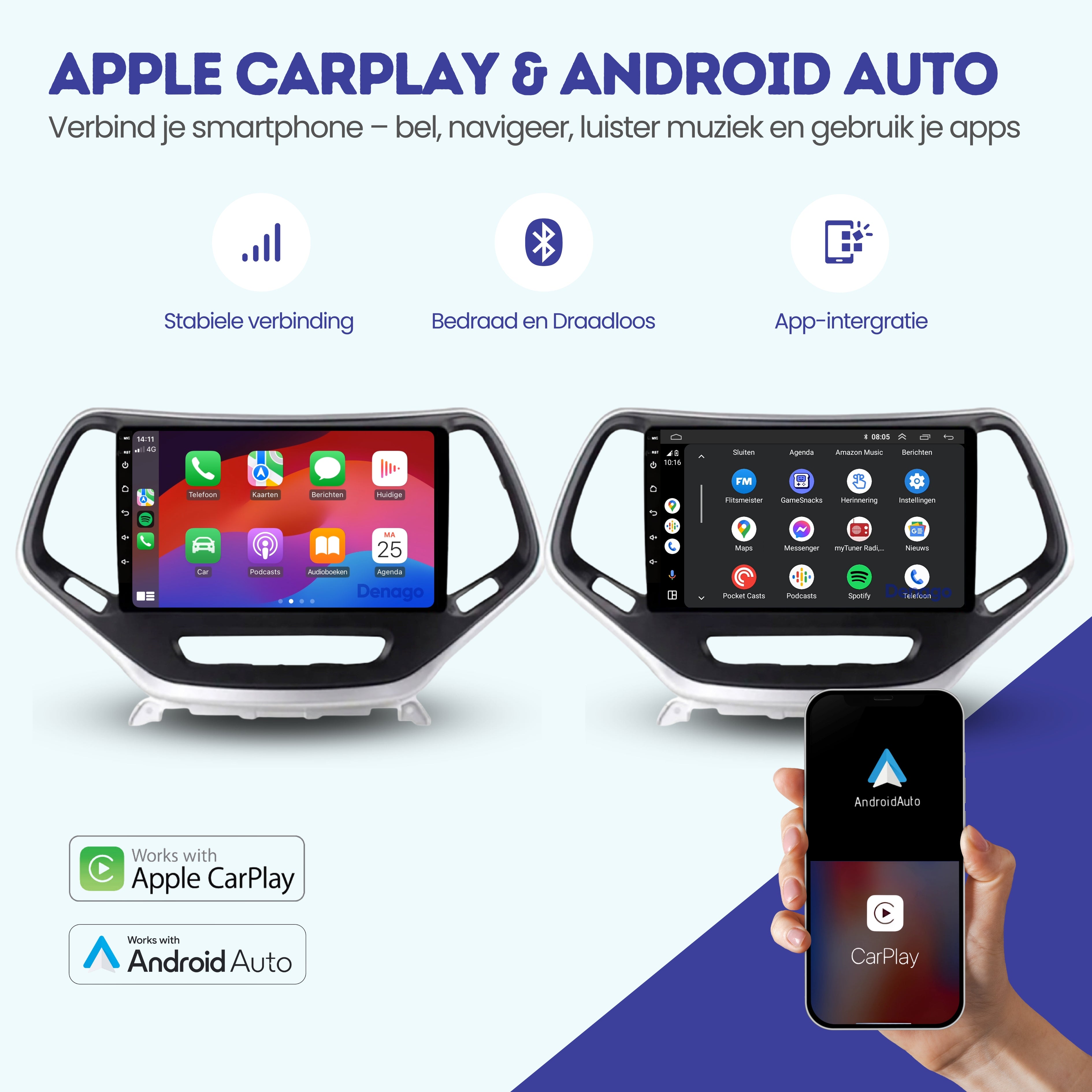 📱 CarPlay & Android Auto – draadloos gemak