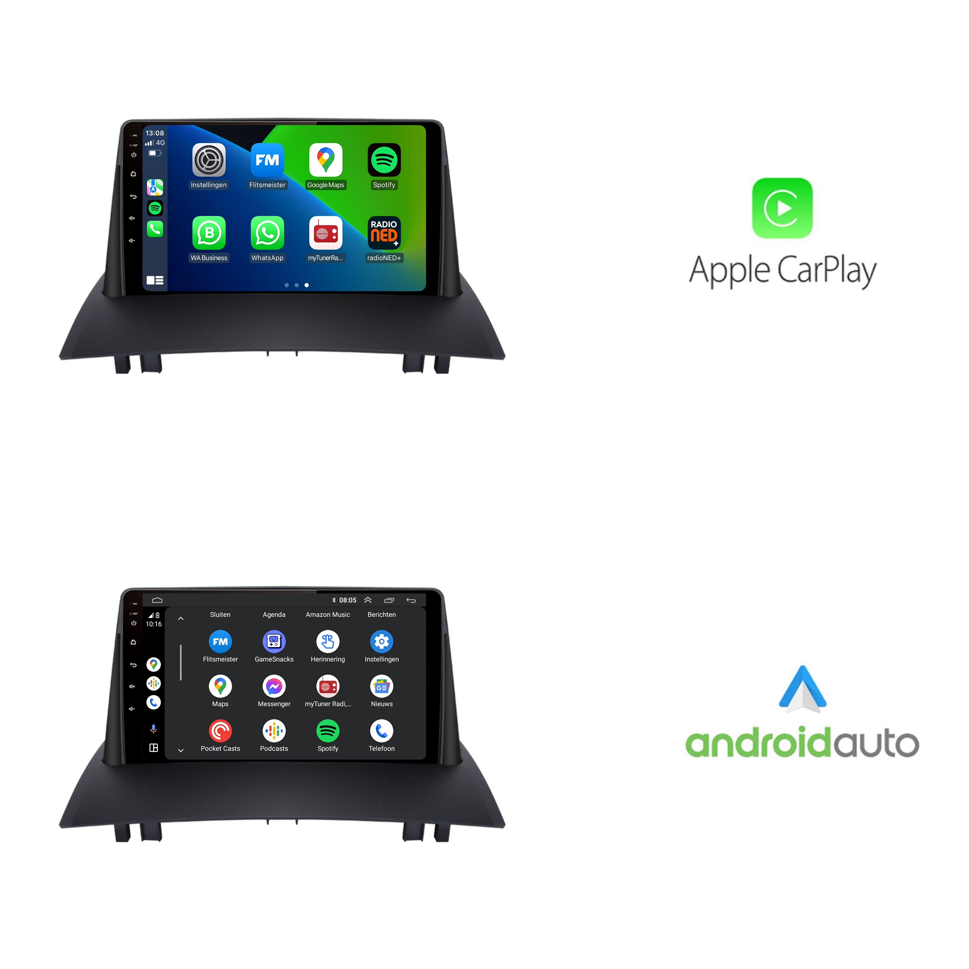 - Internet radio: Luister gratis het betere DAB+ via CarPlay of Android Auto.