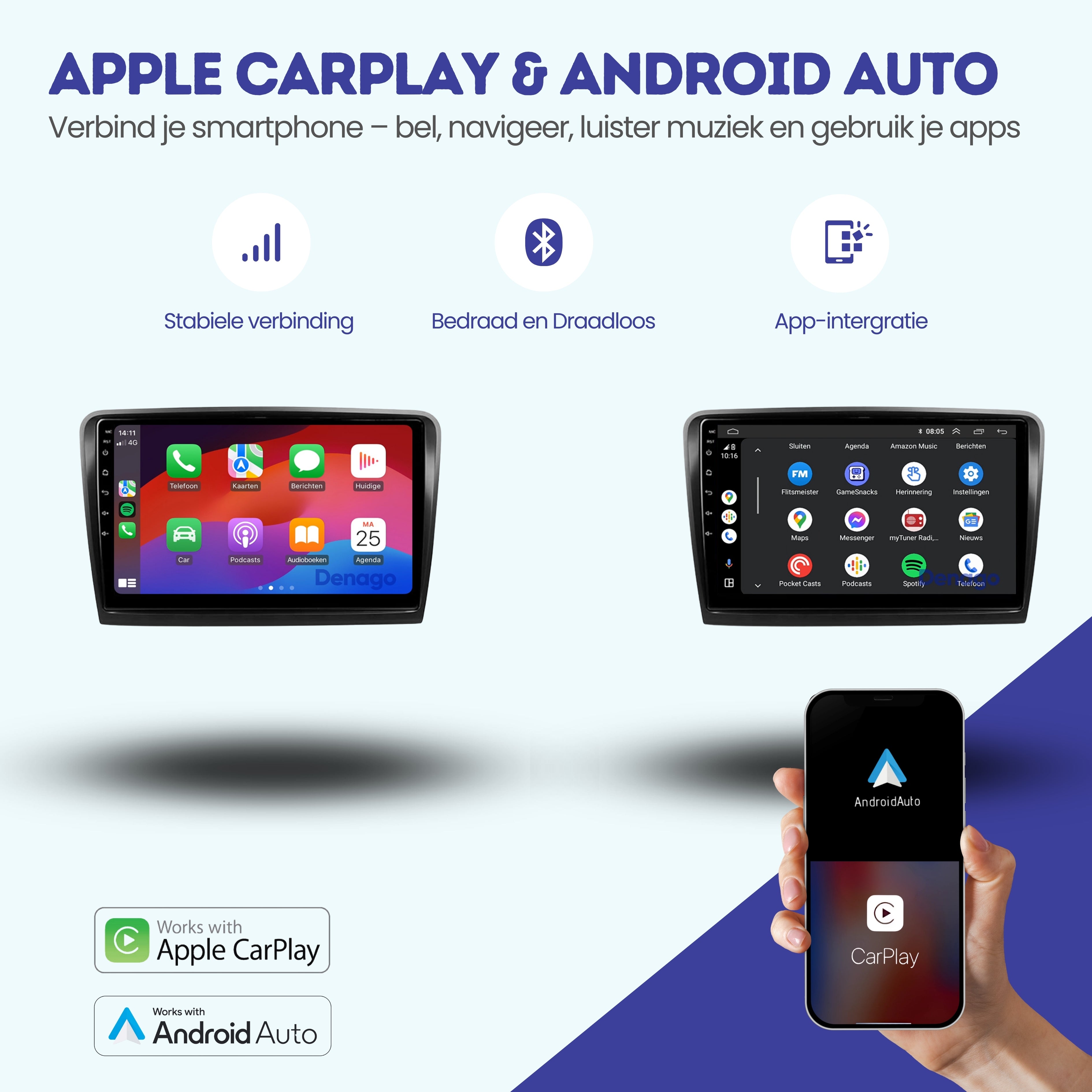 📱 CarPlay & Android Auto – jouw smartphone draadloos op het grote scherm