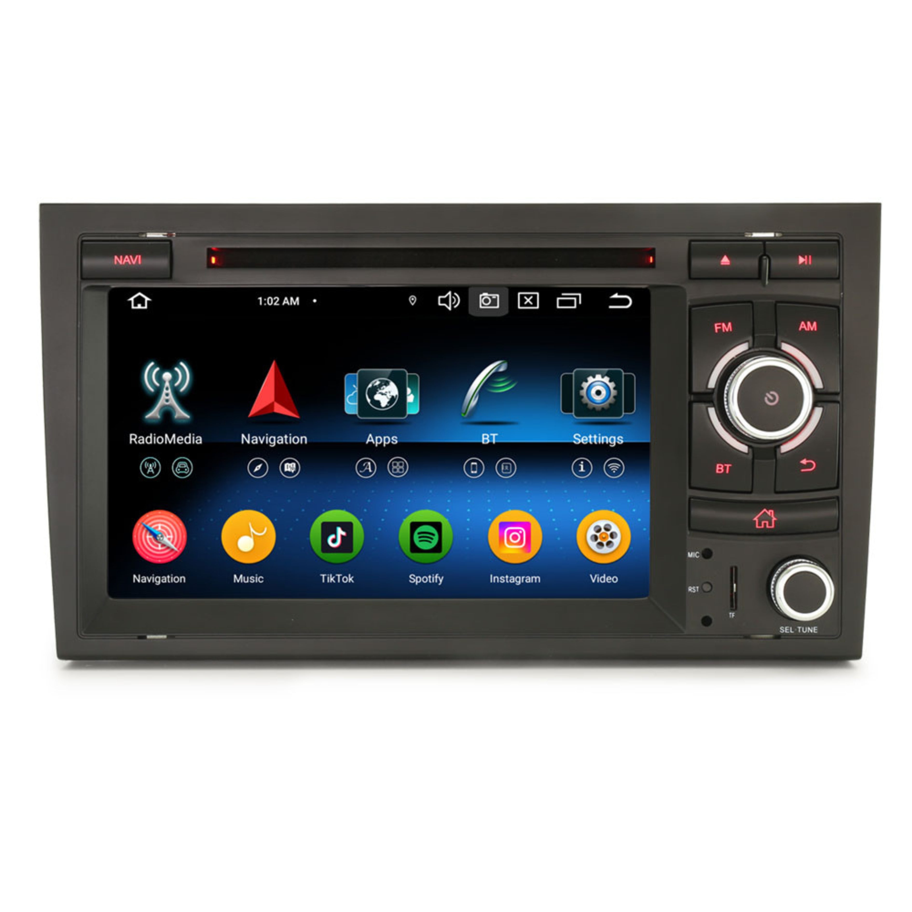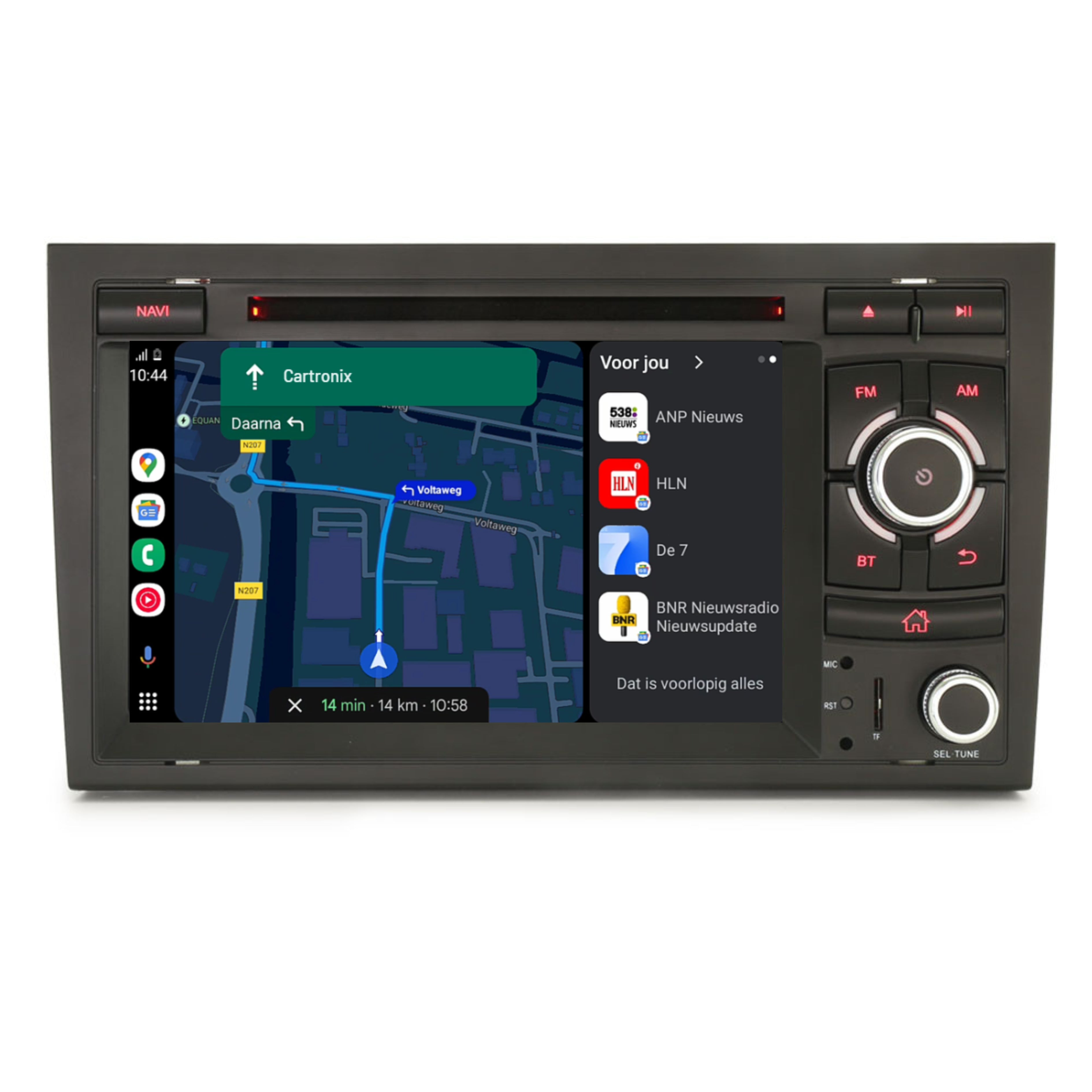 Maak autorijden leuker, slimmer en veiliger met de Cartronix CTX-116728 Android 14 autoradio, geschikt voor Audi A4, S4, RS4 en Seat Exeo (2000–2013). Deze moderne multimedia unit biedt een complete set functies zoals online én offline navigatie, draadloos CarPlay en Android Auto, Bluetooth, FM-radio, Spotify, YouTube, Netflix, Ziggo Go en nog veel meer. Dankzij de Google Play Store kun je de autoradio volledig personaliseren met je favoriete apps en entertainment. De CTX-116728 is uitgerust met een groot 7 inch HD touchscreen, een snelle 8-core processor, 4 GB RAM en 64 GB opslaggeheugen (uitbreidbaar via USB of microSD). Zo geniet je van soepele prestaties, haarscherp beeld en eindeloze mogelijkheden — of je nu onderweg wilt navigeren, muziek streamen of series wilt kijken (alleen wanneer de auto stilstaat, voor je eigen veiligheid).