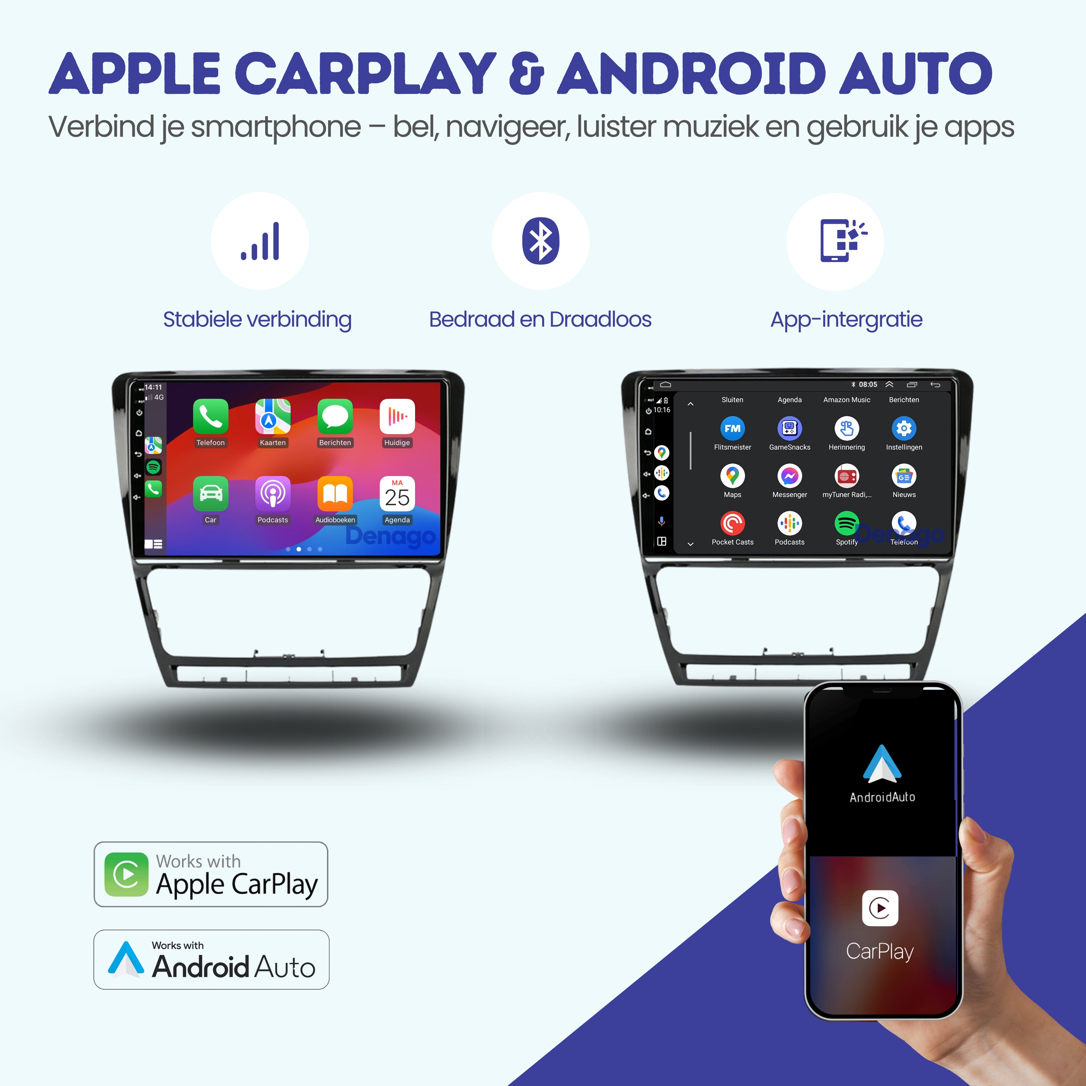 📱 CarPlay & Android Auto – jouw smartphone draadloos op het grote scherm