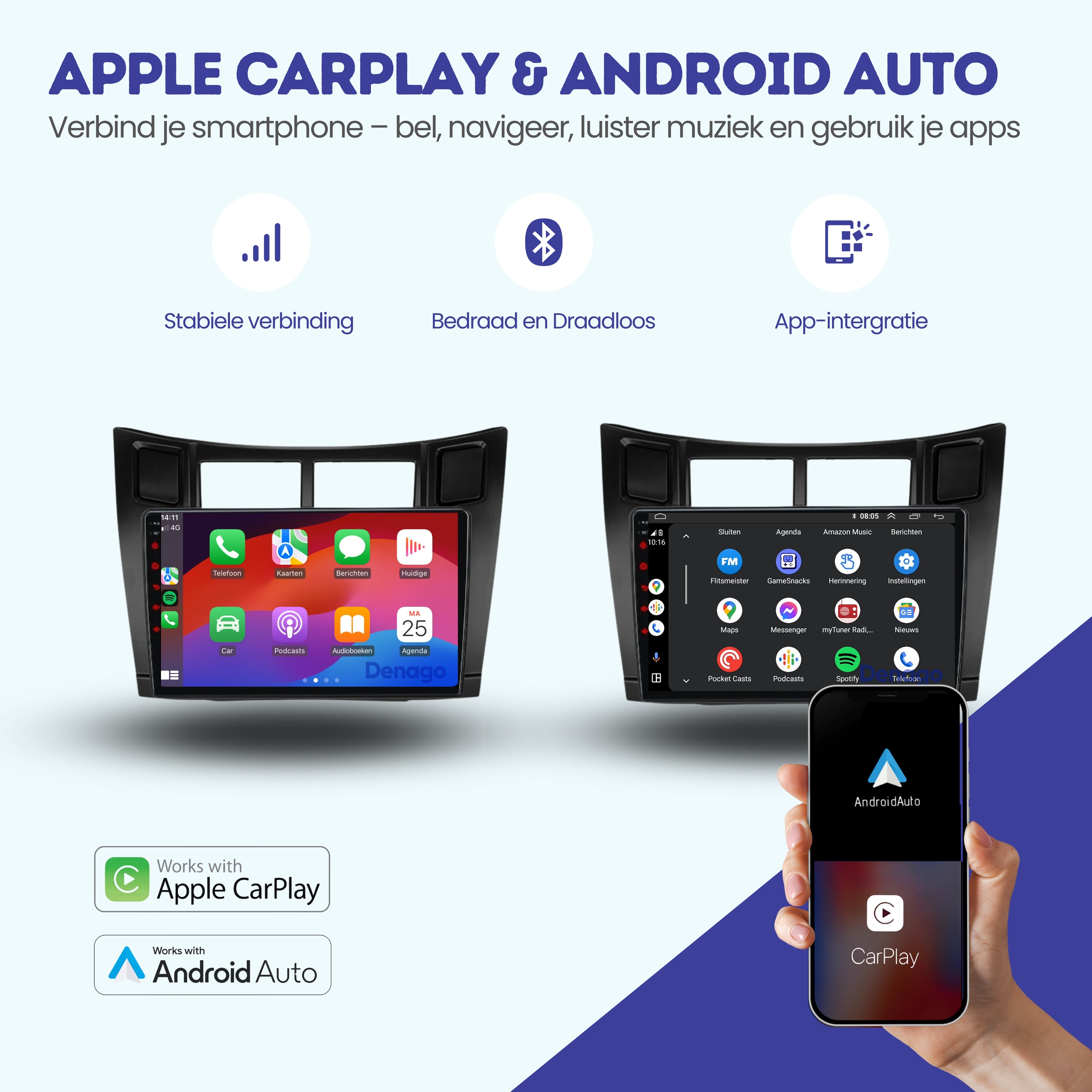 📱 CarPlay & Android Auto – jouw smartphone draadloos op het grote scherm
