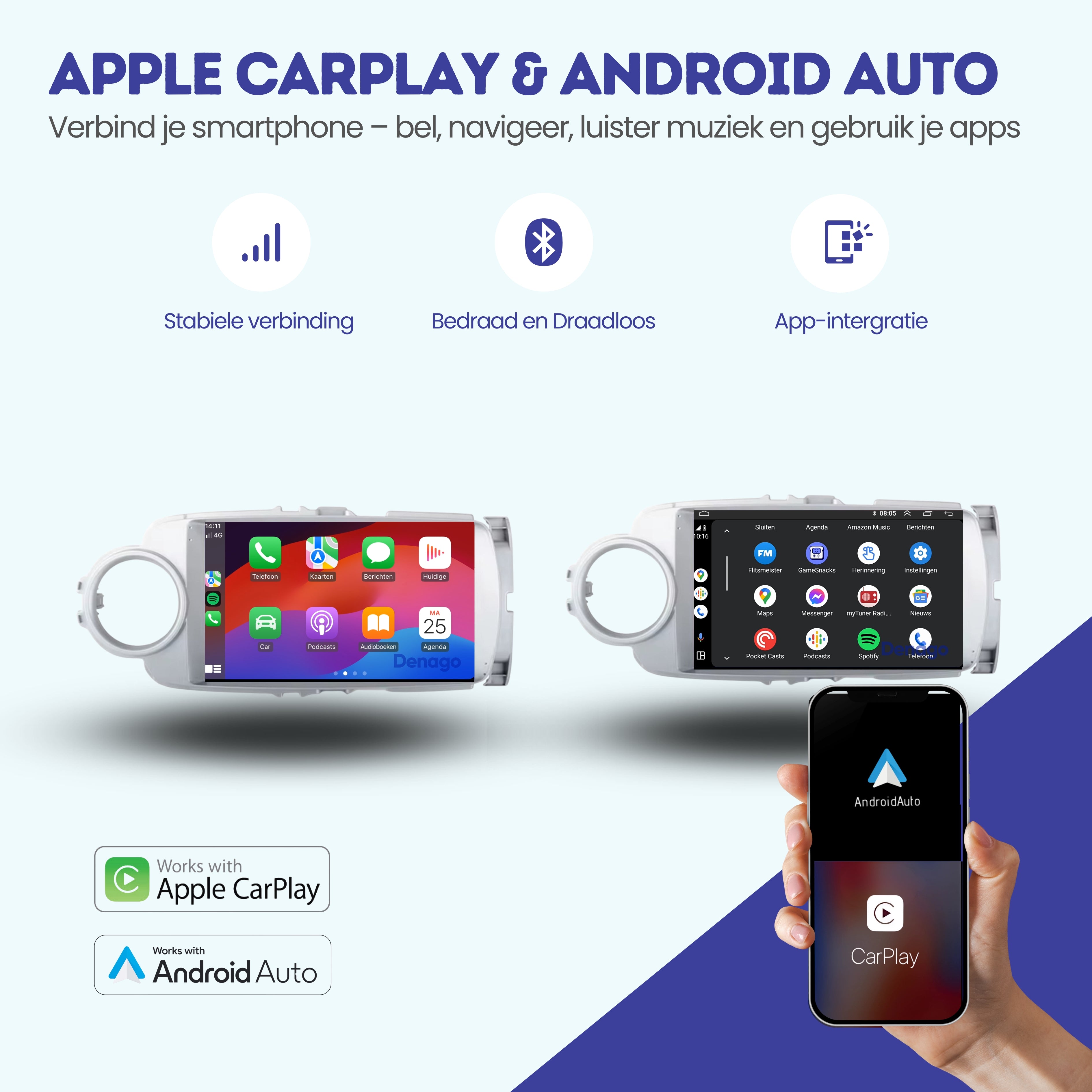 📱 CarPlay & Android Auto – jouw smartphone draadloos op het grote scherm