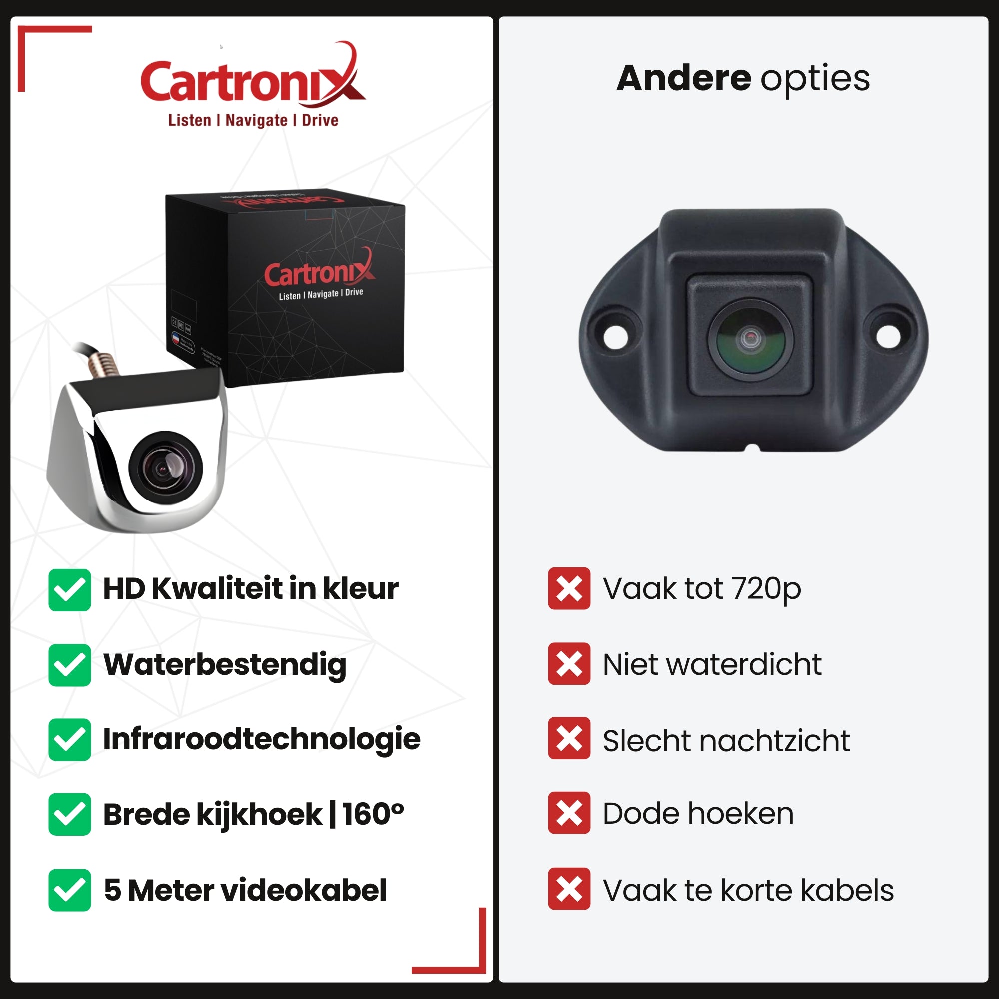 De standaard Cartronix-camera’s leveren al uitstekende prestaties, maar de PRO-versie biedt de ultieme upgrade voor wie alleen het beste wil voor zijn voertuig.