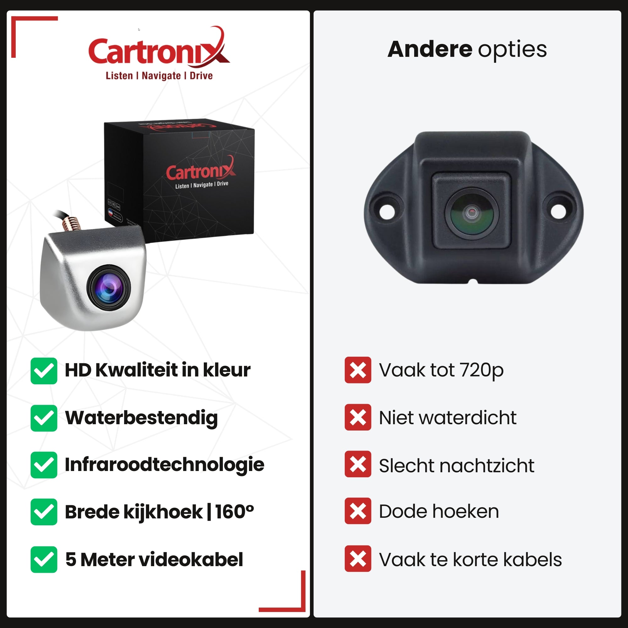 De standaard Cartronix-camera’s leveren al uitstekende prestaties, maar de PRO-versie biedt de ultieme upgrade voor wie alleen het beste wil voor zijn voertuig.