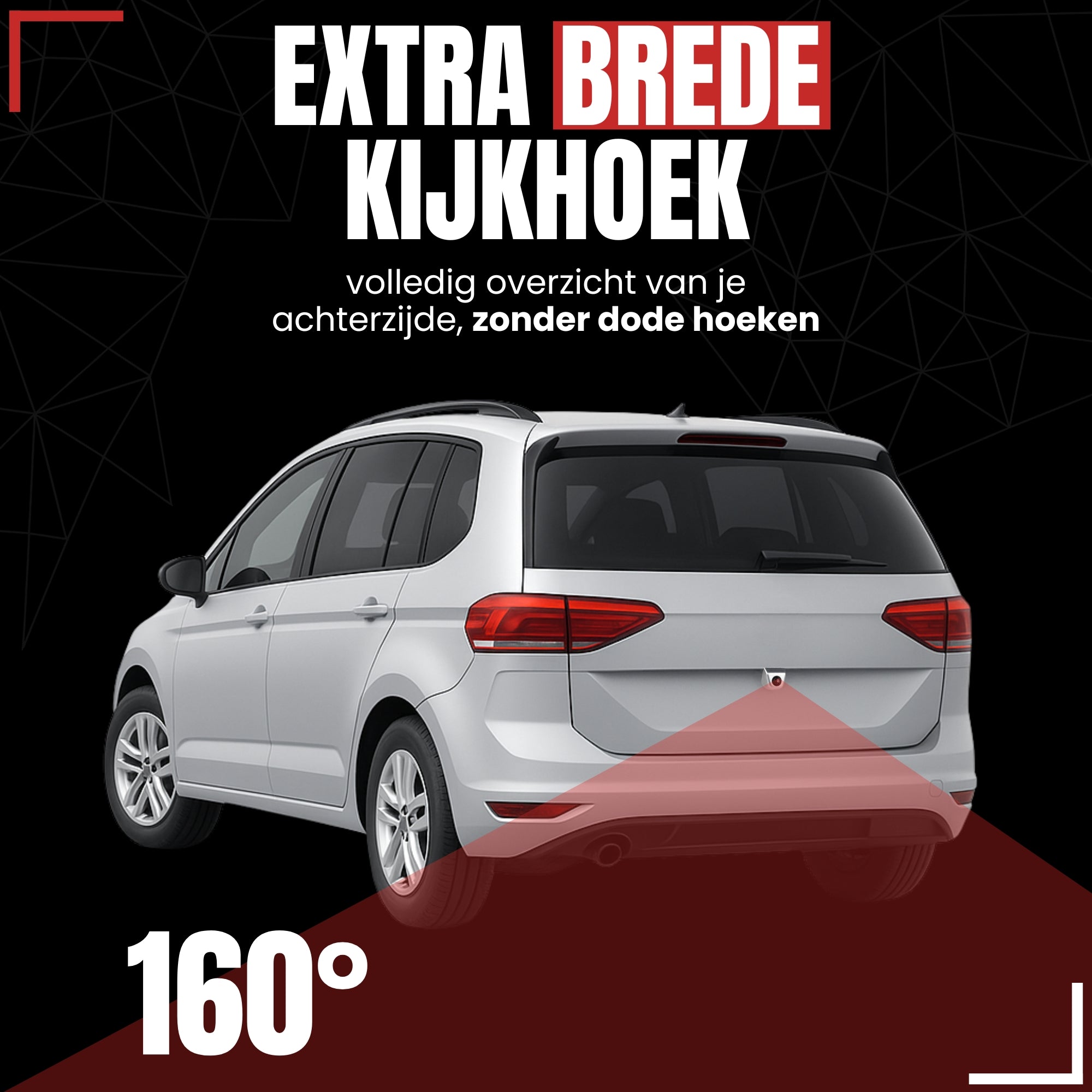 ✔ Brede kijkhoek van 160° – maximale zichtbaarheid rondom je voertuig