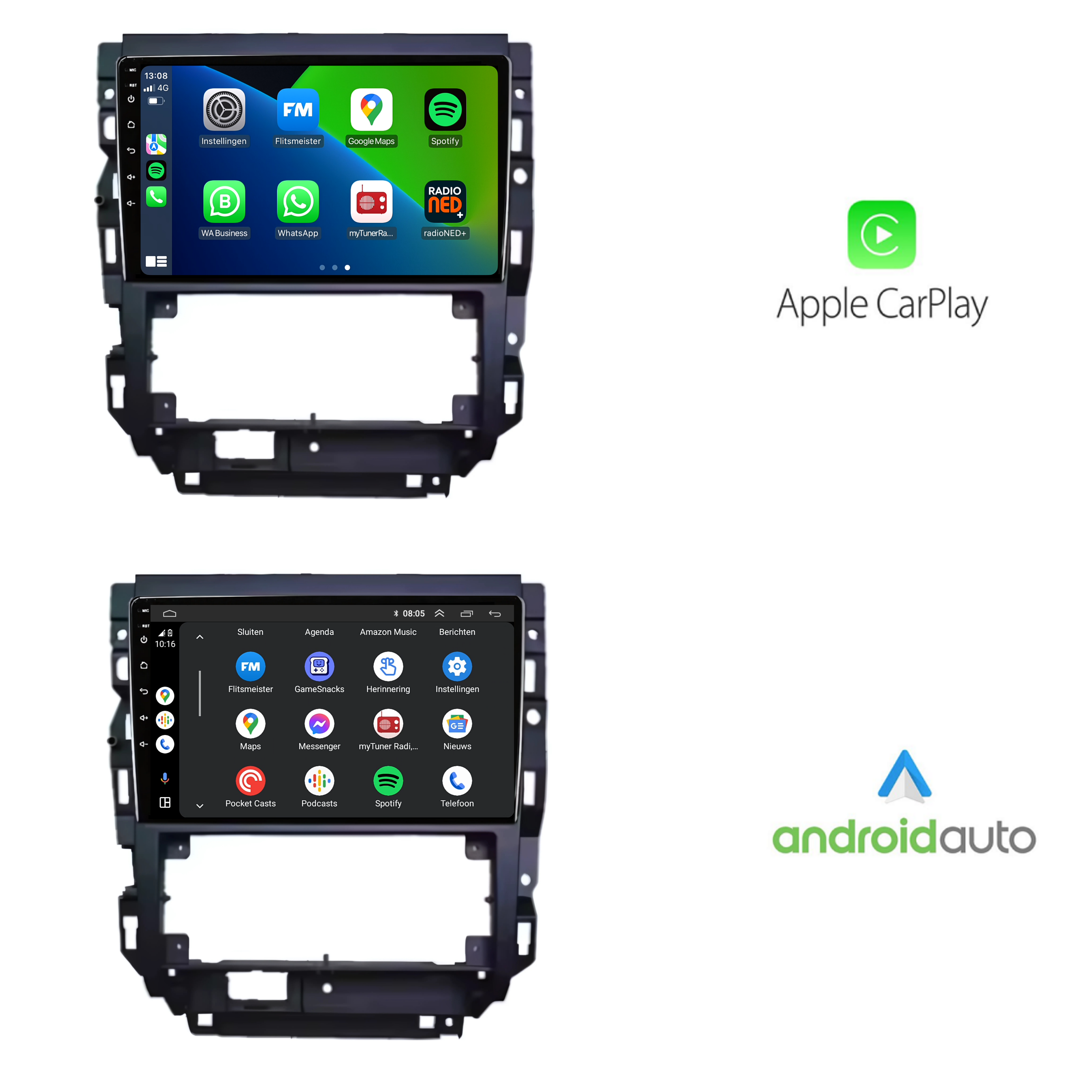 - Draadloos CarPlay & Android Auto Bedien je smartphone via het radioscherm.